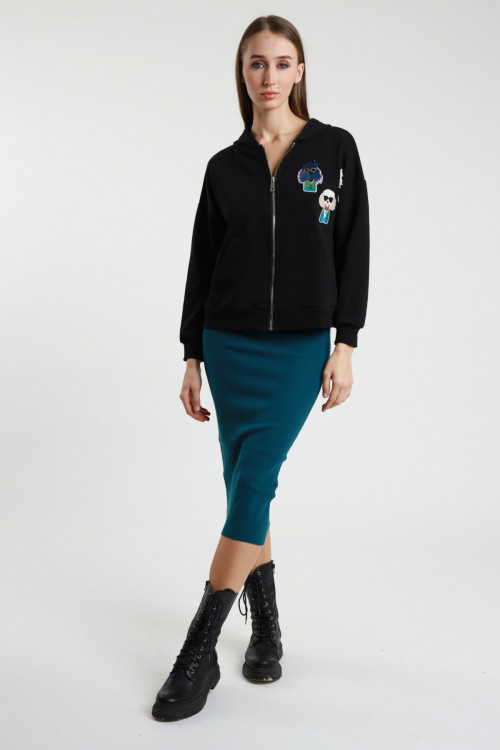 Flared skirt in spotted pattern, satin effect with lace hems and side slit. 100%pl