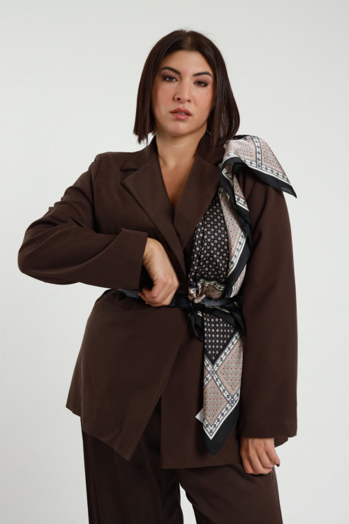 Jacke mit Schal und Taillengürtel – Linie Curvy Susy Star. 65%vi 35%pl