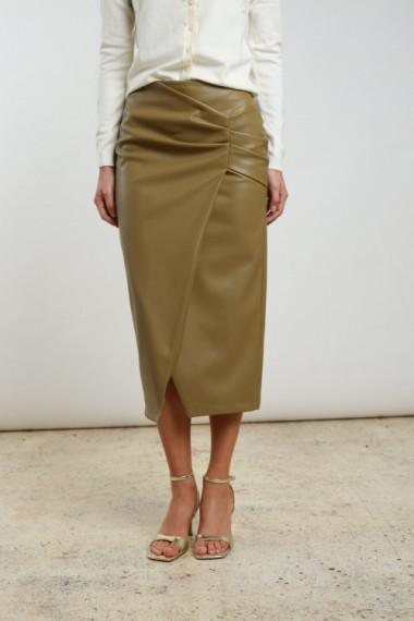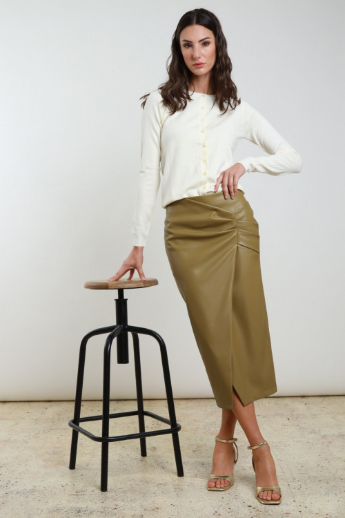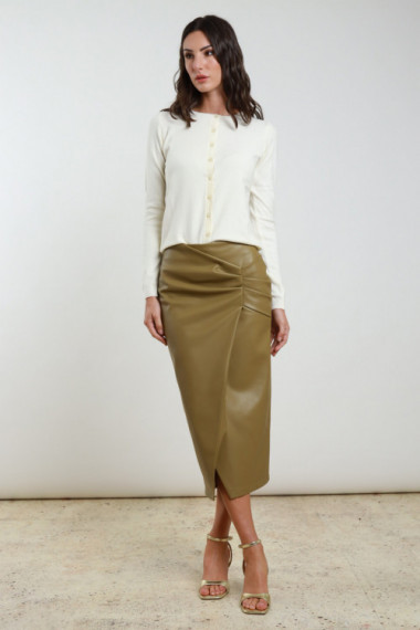 MIDI -Rock in Kunstleder mit vorderem Schlitz und Reißverschluss auf der Rückseite versteckt. 50%PL 50%PU