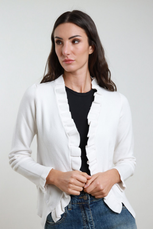 Cardigan Crop Chiusura 2 Bottoni co Dettaglio Tessuto Micro Paillettes.