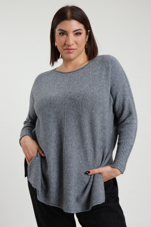 Langes Fellimitat mit Kapuze und Clip-Knopfverschluss. Seitentaschen – Curvy Susy Star-Linie. 100%pl