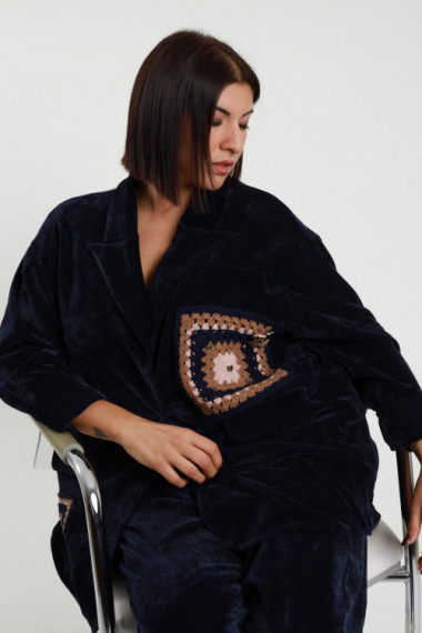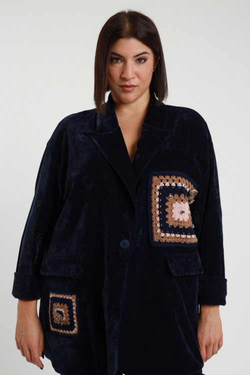 Jacke zum Überziehen mit einem Knopf aus Samt mit Stickerei und Strasssteinen. 95%pl 5%ea+100%pl
