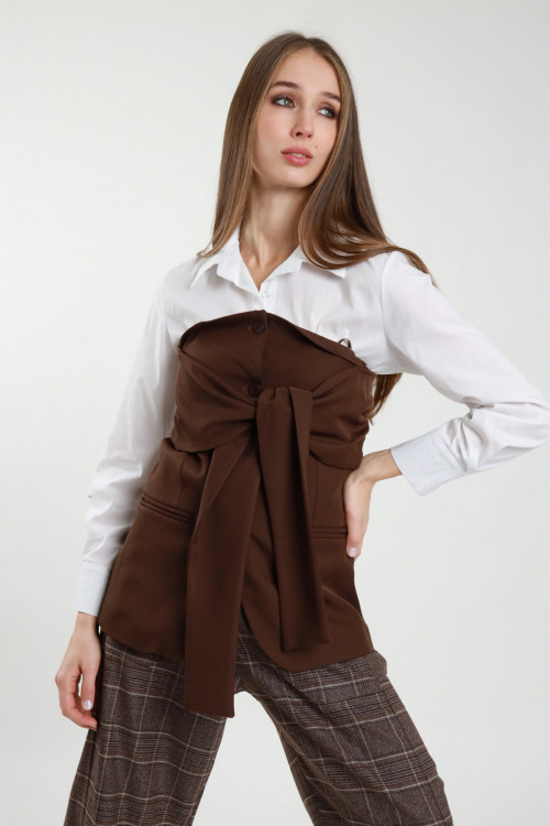 Lange trägerlose Tops, Knöpfe und Knoten vorne. Elastisch auf der Rückseite. 96%PL 4%EA
