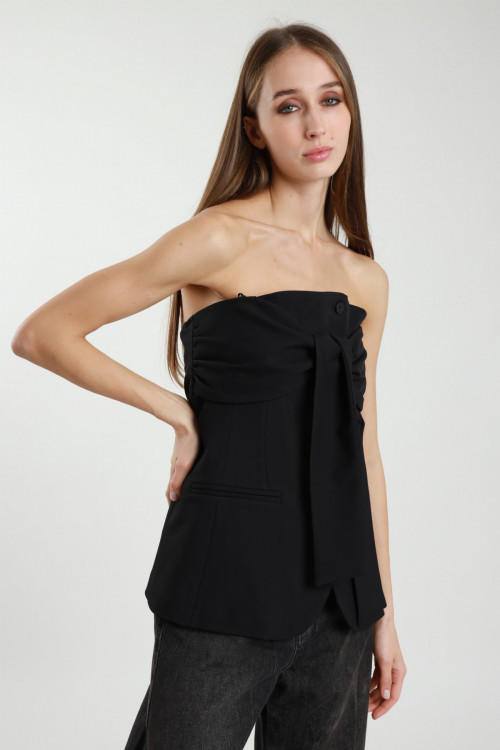 Lange trägerlose Tops, Knöpfe und Knoten vorne. Elastisch auf der Rückseite. 96%PL 4%EA