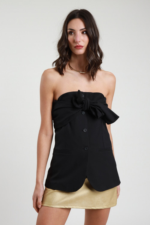 Long strapless tops, buttons and knot on the front. Elastic on the back. 96%PL 4%ea
