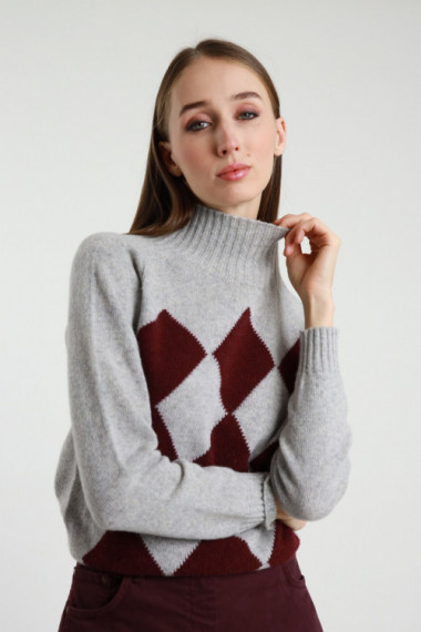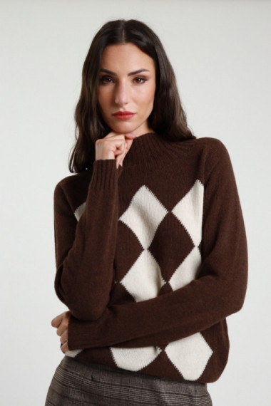 Kraterhalspullover mit Rautenmuster und gerippten Säumen. 70%wo 25%pa 5%af