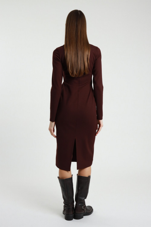 Abito Midi a Portafoglio con Dettaglio Gioiello e Spacco Laterale.