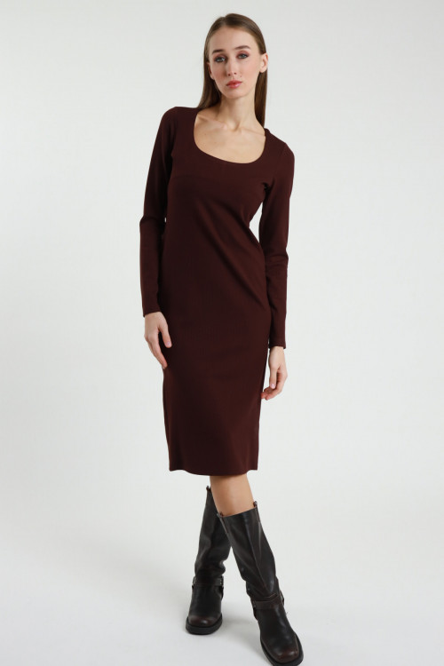 Cibs -Scheidekleid, lange Ärmel, runder Ausschnitt und Longuette -Rock geschnitten. 65%VI 30%NY 5%sp