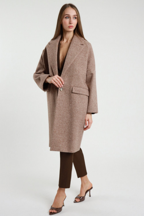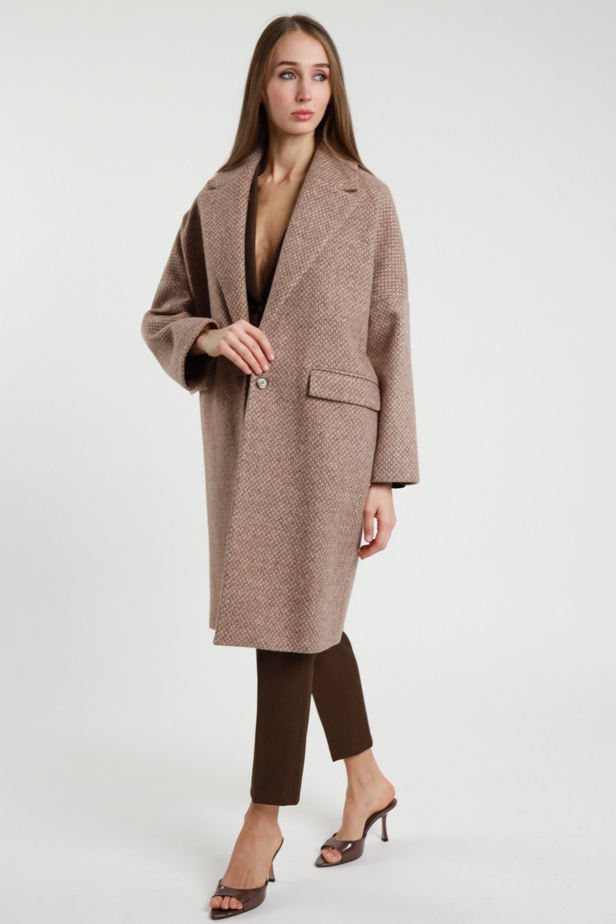 Cappotto Lungo in Fantasia Check con Dettaglio Spille sul Rever, Tasche a Filetto e Chiusura 2 Bottoni.