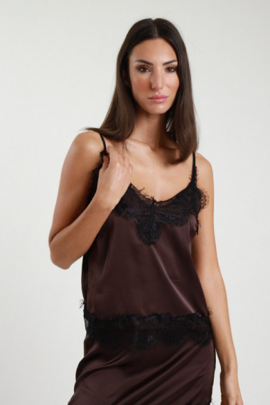 Oberer Satin mit verstellbaren Gurten, elastisch auf der Rückseite, Spitze am Boden und Ausschnitt. 100%pl