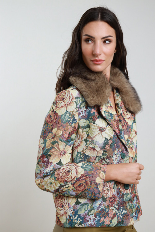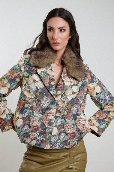 Jiquard -Jacke mit Fehlerkragen, Klassiker und Knöpfen Verschluss. 62%PL 33%CO 5%AF+100%PL+100%PL