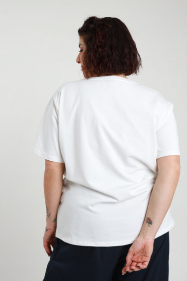 T-Shirt Over in Cotone Elasticizzato con Dettaglio Frange sulle Maniche - Linea Curvy Susy Star.