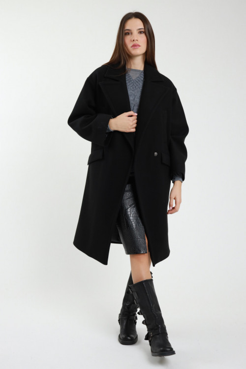 Übergroßer Eiermantel mit Taschen und Clipverschluss. 100%pl