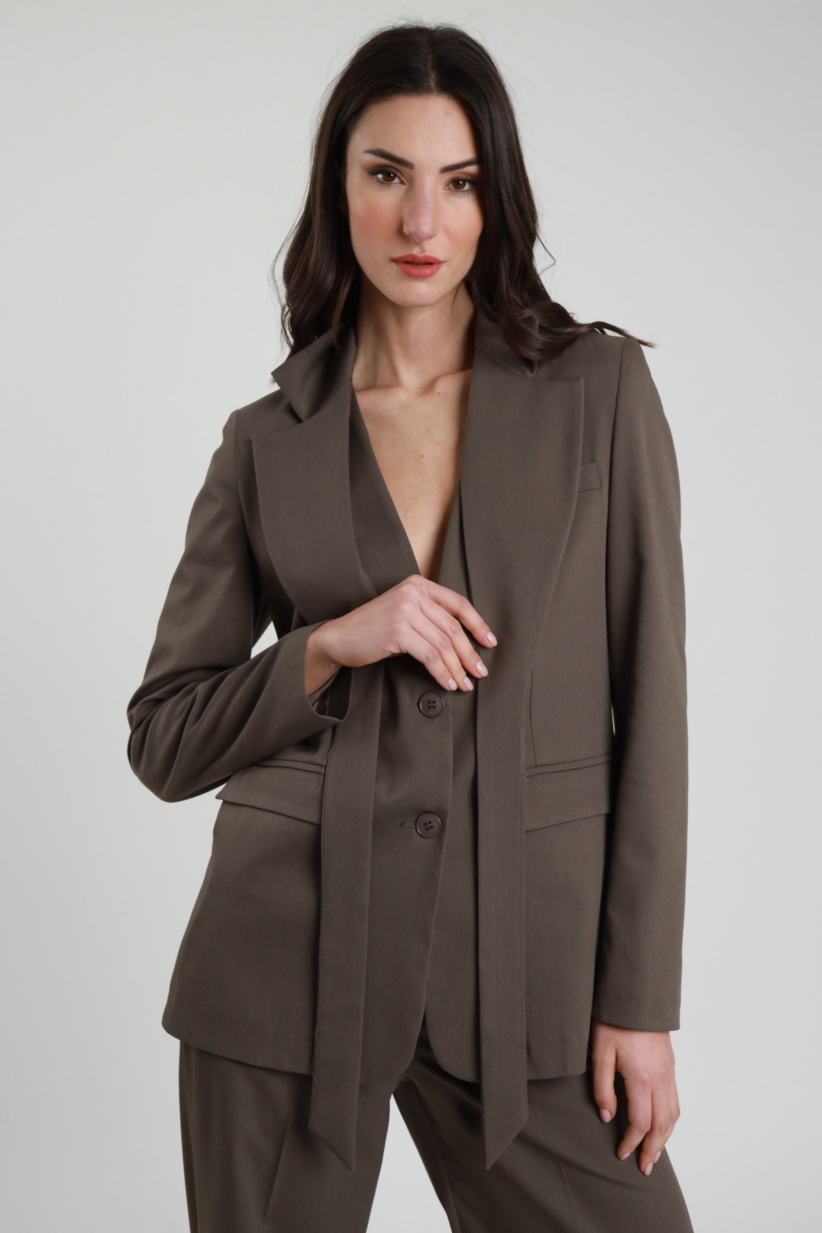 Blazer Rever mit Schnürsenkeln, zwei Knöpfen, tailliert. 78%pl 18%vi 4%ea+100%pl