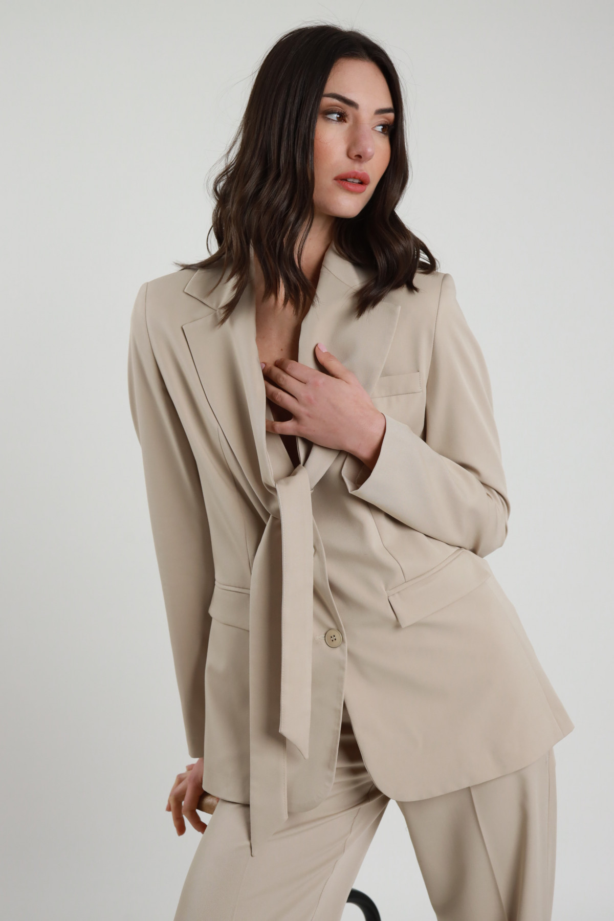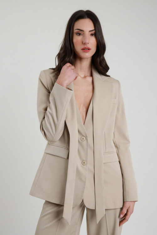 Blazer Rever mit Schnürsenkeln, zwei Knöpfen, tailliert. 78%pl 18%vi 4%ea+100%pl