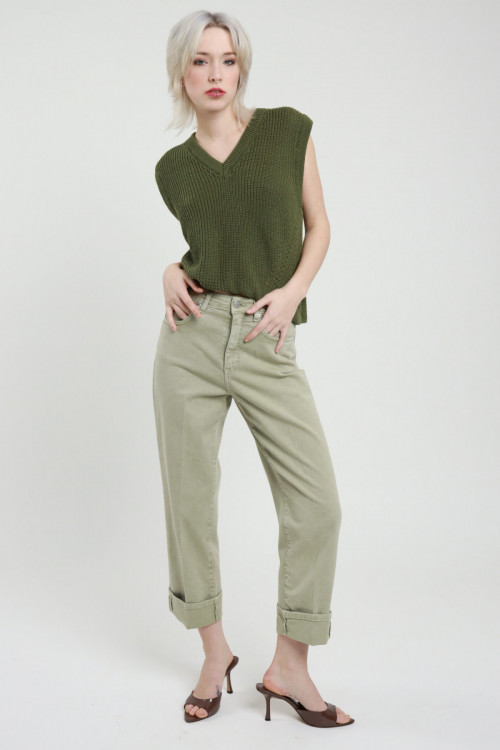 Jeans mit geradem Bein aus Stretch-Baumwolle mit hoher Klappe. 98 % CO 2 % Stück