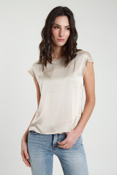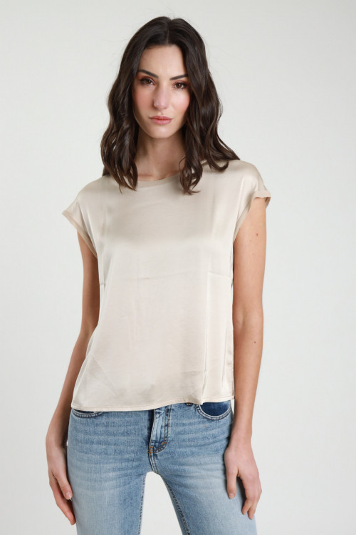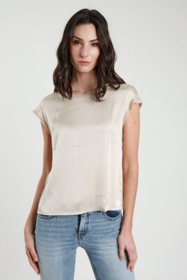 Stretch-T-Shirt mit halben Ärmeln aus elastischer Viskose mit Georgette-Kanten. 97 % vi 3 % ea + 100 % vi