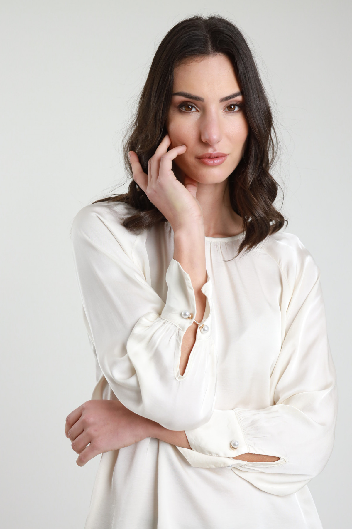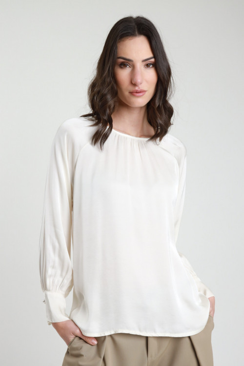 Bluse mit Rundhalsausschnitt und Bündchen aus Viskose mit Satineffekt. 100 % vi