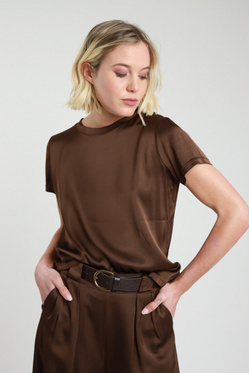Stretch-T-Shirt mit Rundhalsausschnitt aus elastischer Viskose mit Satineffekt. 97 %vi 3 %ea