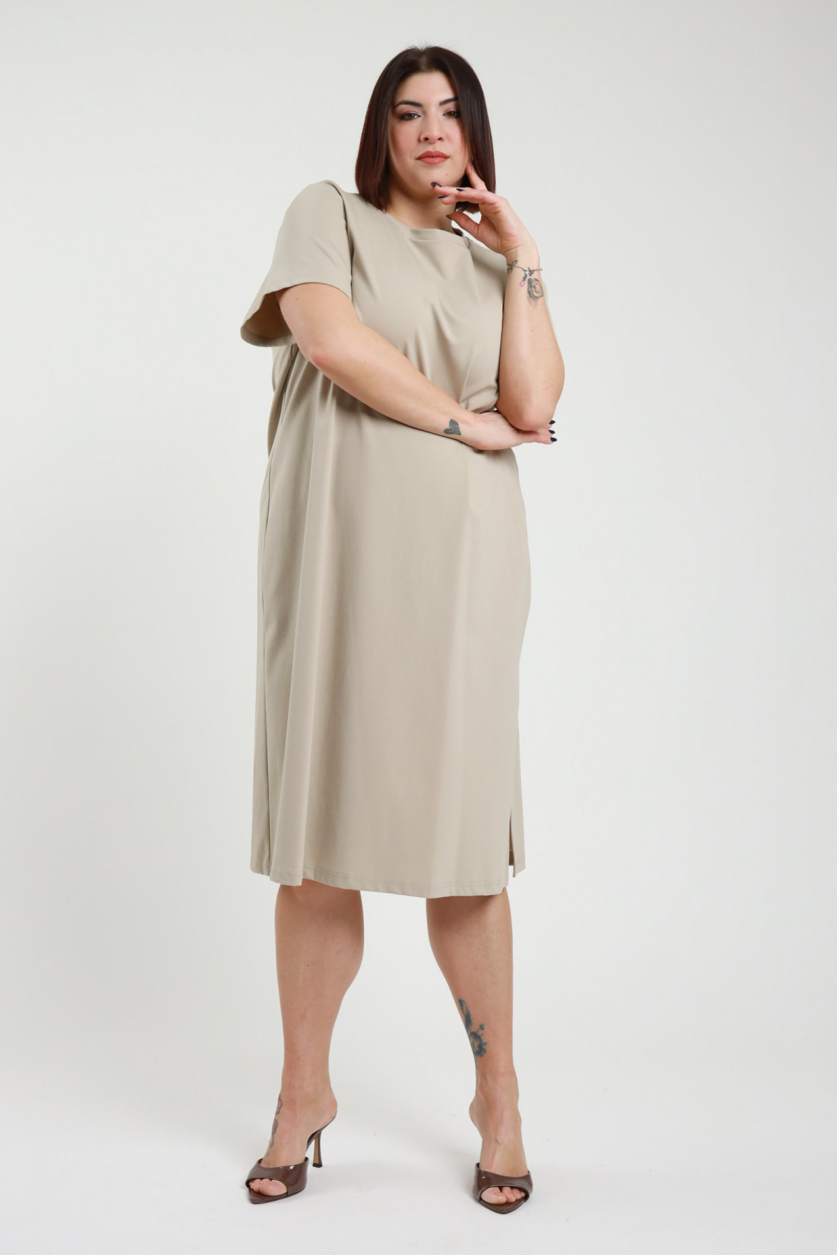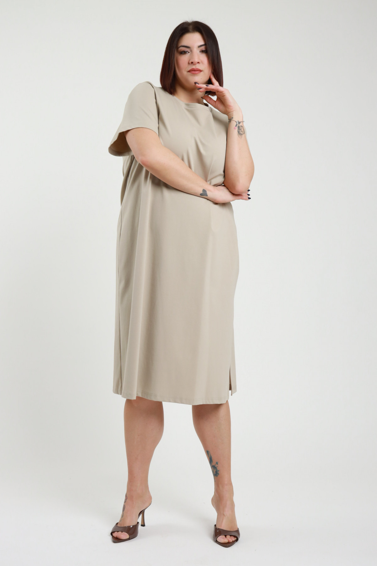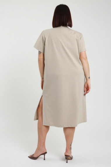 Kurzarmkleid mit Rundhalsausschnitt und Seitenschlitzen, Midi-Schnitt – Linie Curvy Susy Star.  52%co 42%pa 6%ea