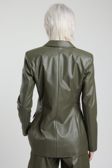 Giacca Ecopelle Monopetto con Tasche Applicate e Dettaglio Fodera a Cotrasto.
