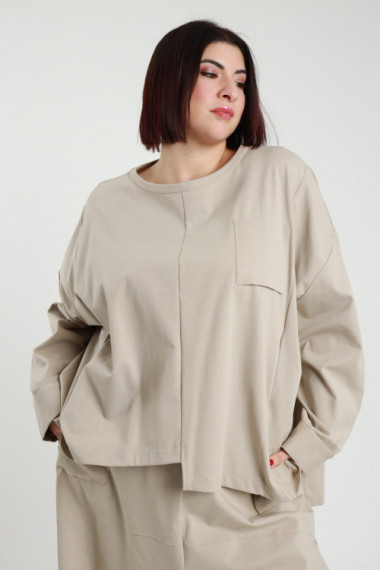 Maglia Girocollo Over, Asimmetrica con Taschino Applicato - Linea Curvy Susy Star.