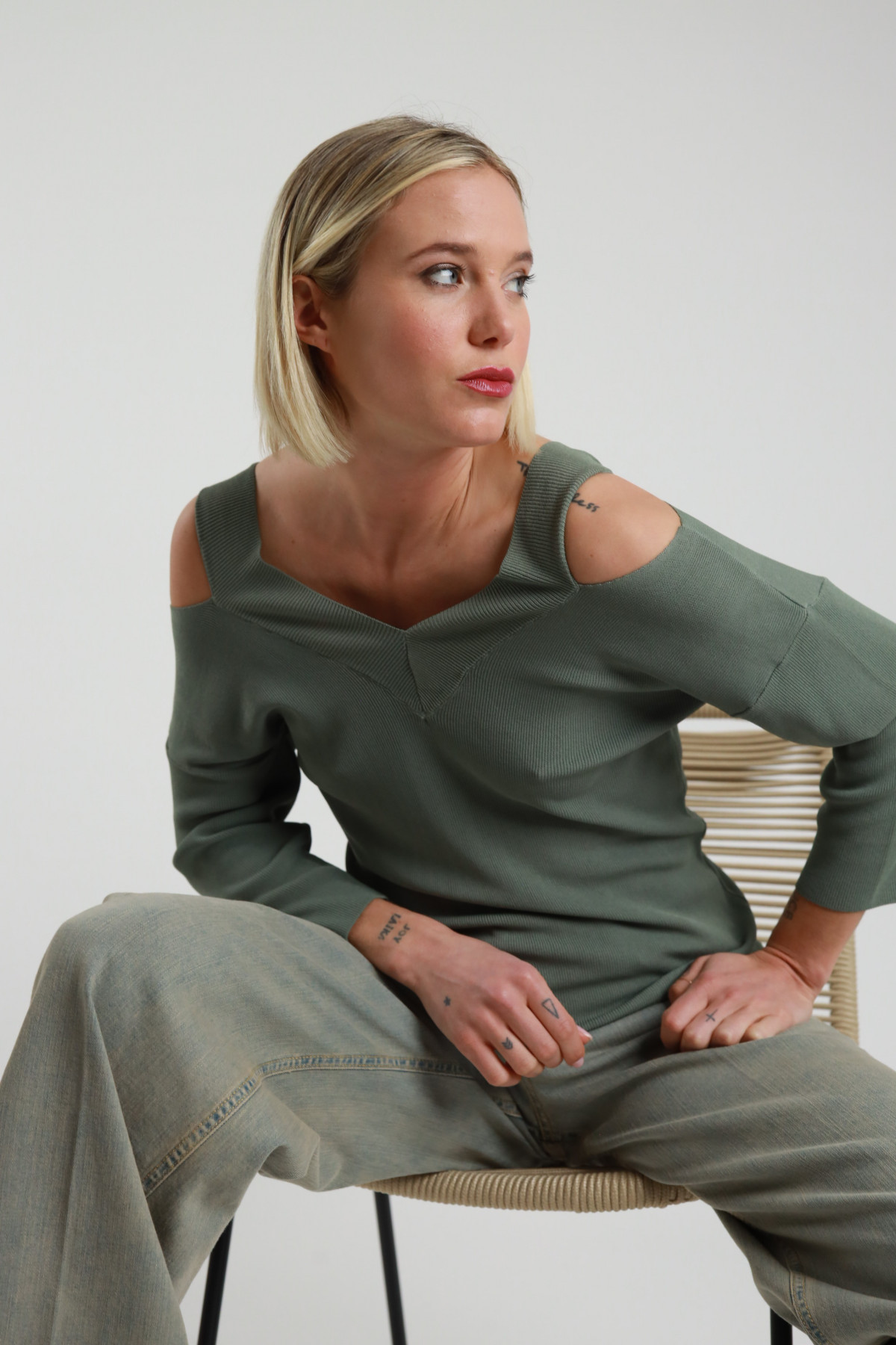 Maglia in Cotone Punto Riso Manica 3/4, Scollo Barchetta.