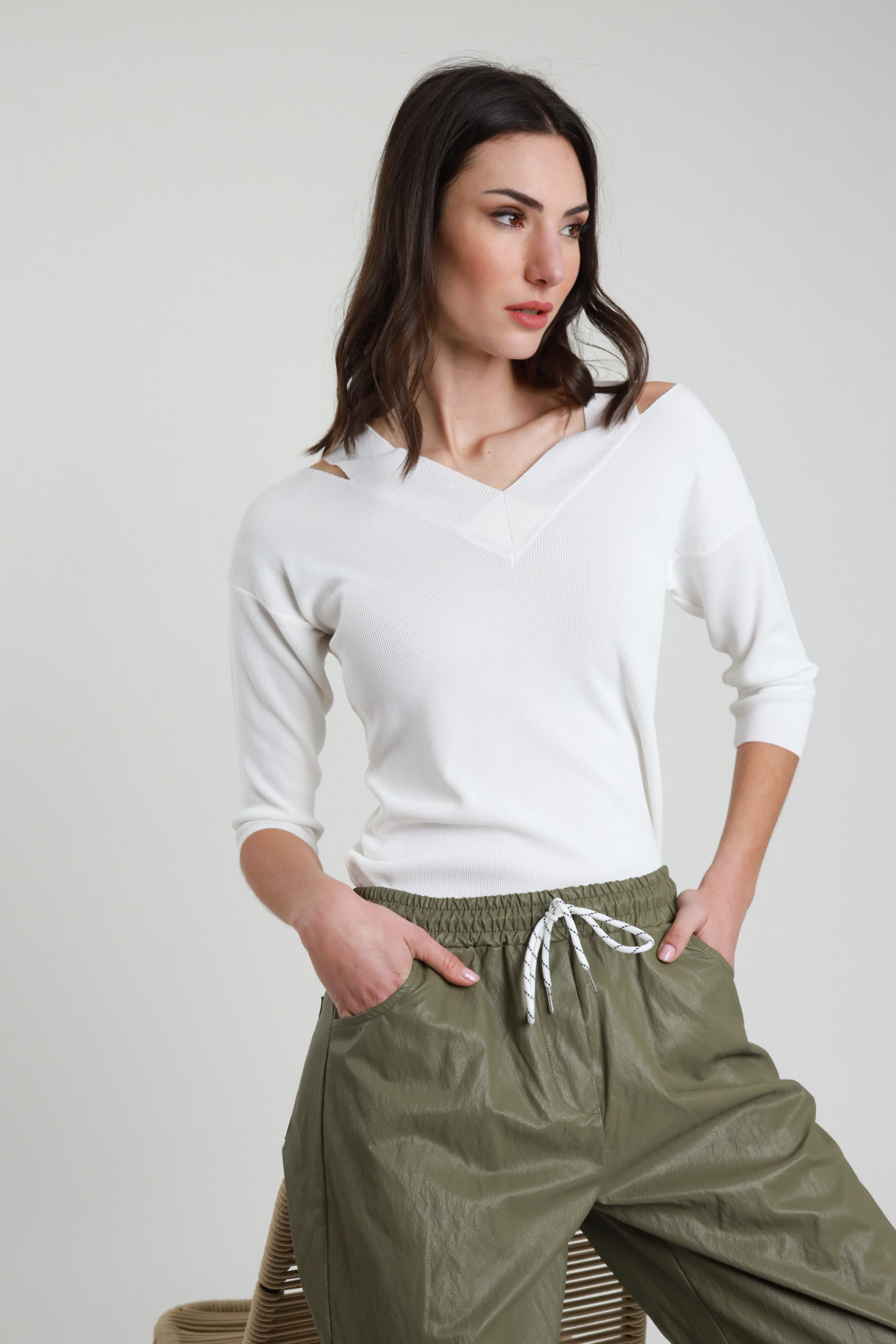 Pullover aus Viskose, V-Ausschnitt mit Ausschnitt an den Schultern. 65 % vi 35 % pa