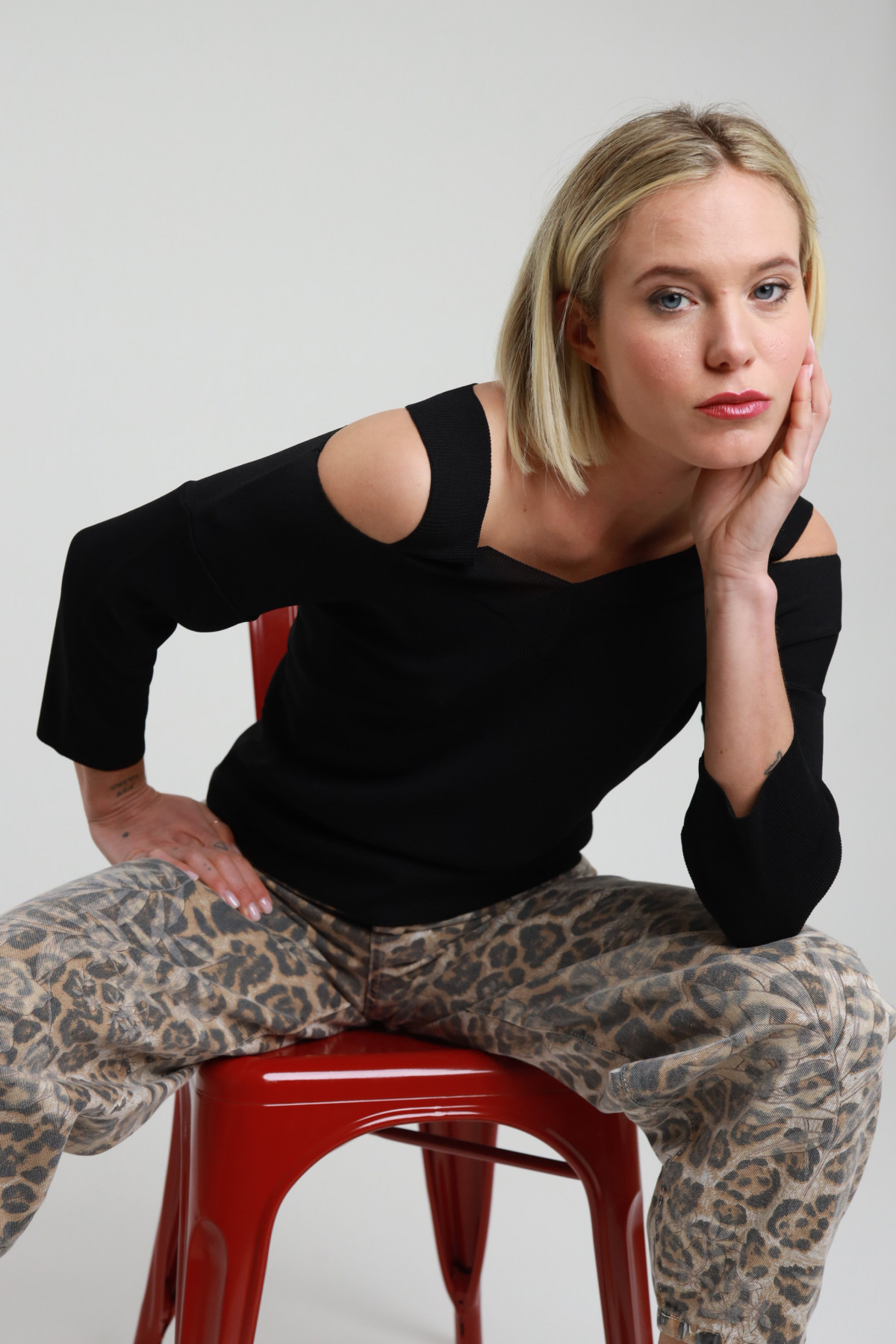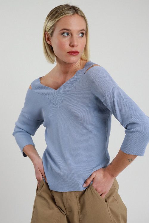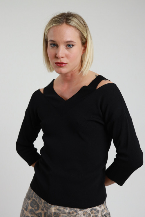 Pullover aus Viskose, V-Ausschnitt mit Ausschnitt an den Schultern. 65 % vi 35 % pa