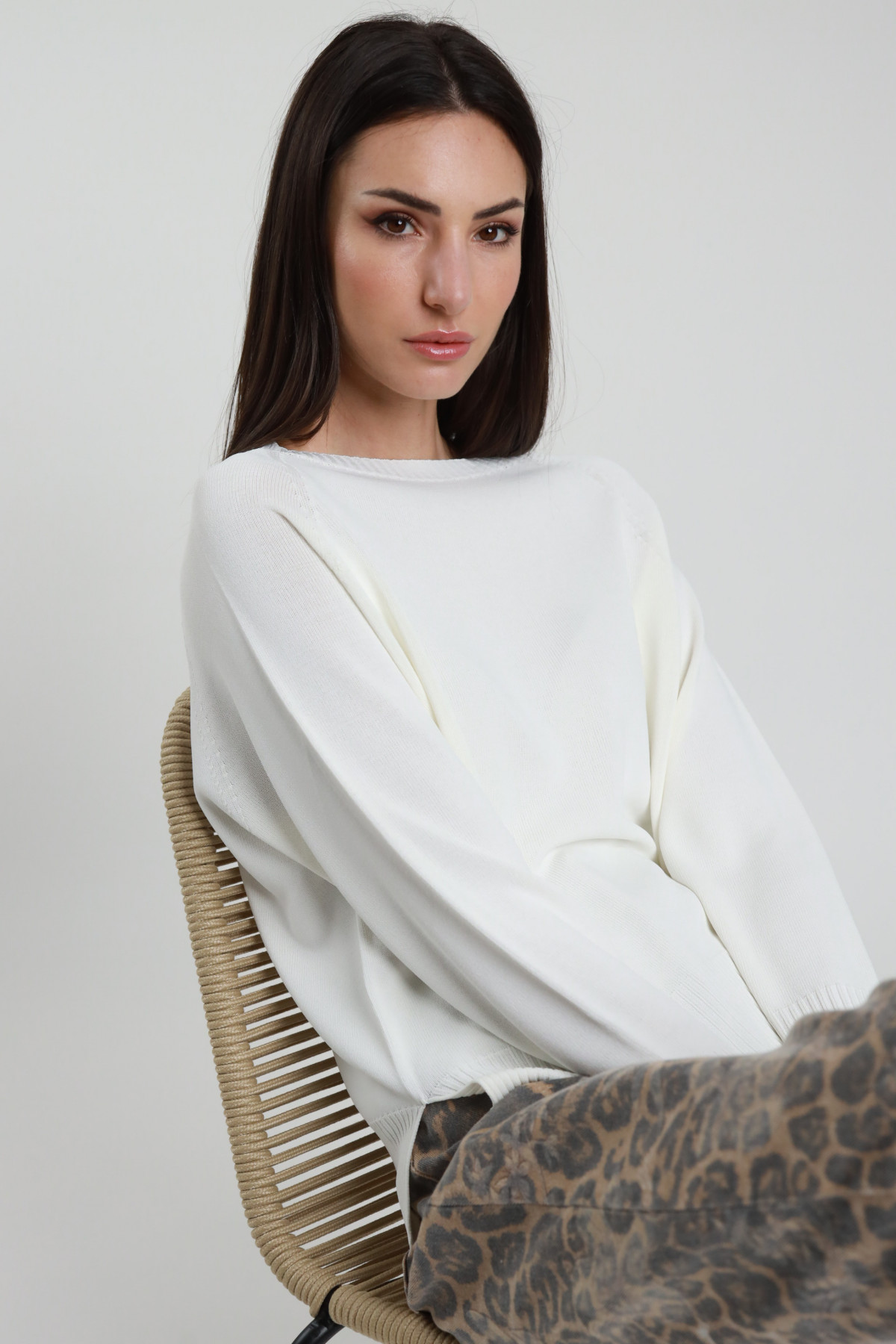 Maglia in Cotone Punto Riso Manica 3/4, Scollo Barchetta.