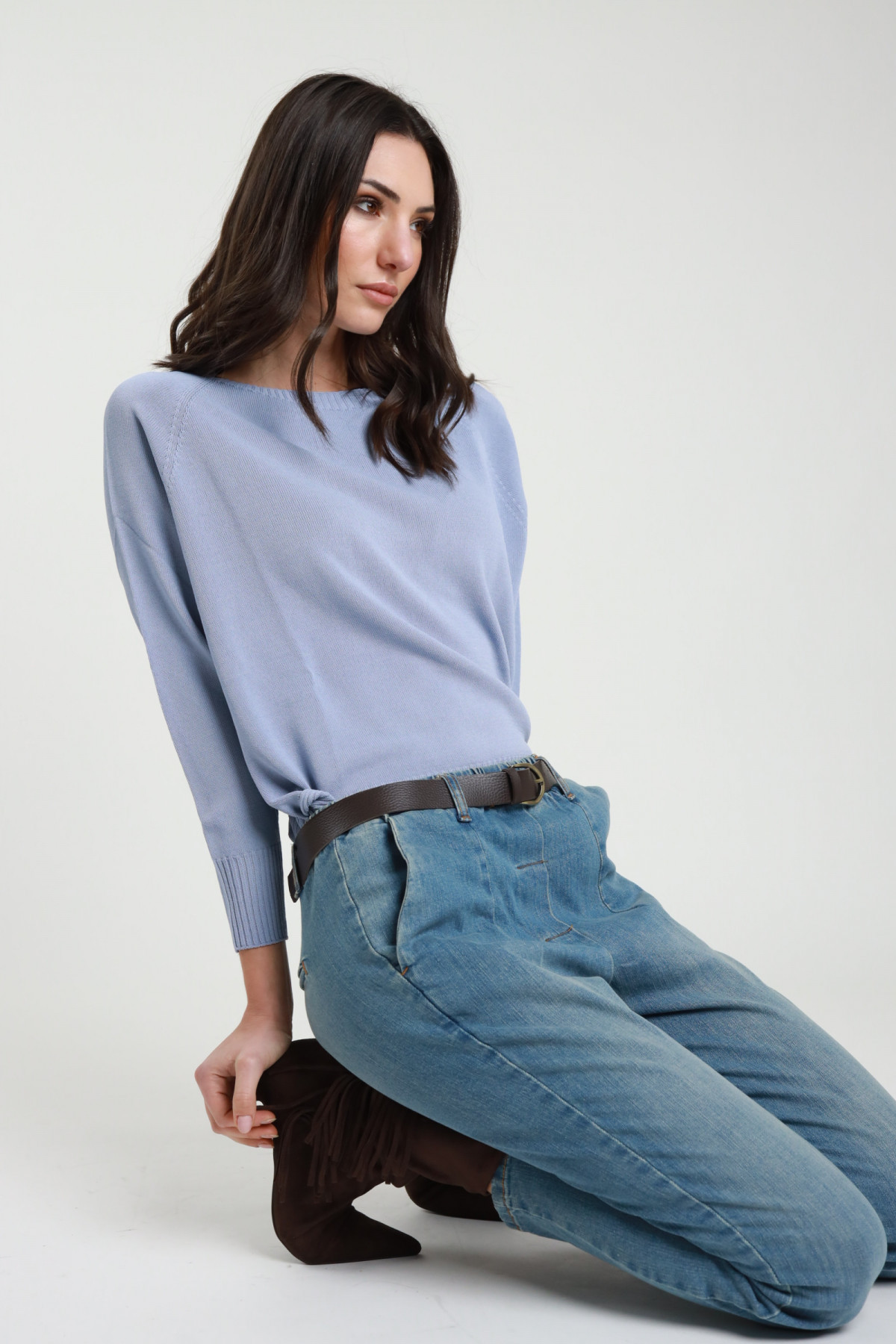 Slim-Jeans aus sandgestrahlter Stretch-Baumwolle mit Taillengürtel. 98 % CO 2 % Stück