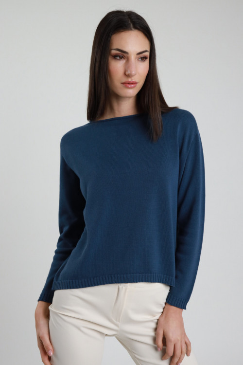 Maglioncino Punto Pannocchia, Scollo Leggermente A Barchetta Con Spacchi Laterali.
