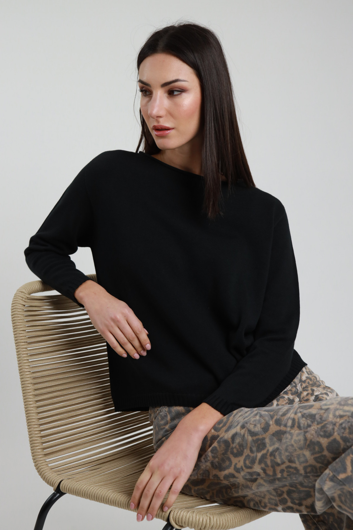 Maglioncino Punto Pannocchia, Scollo Leggermente A Barchetta Con Spacchi Laterali.