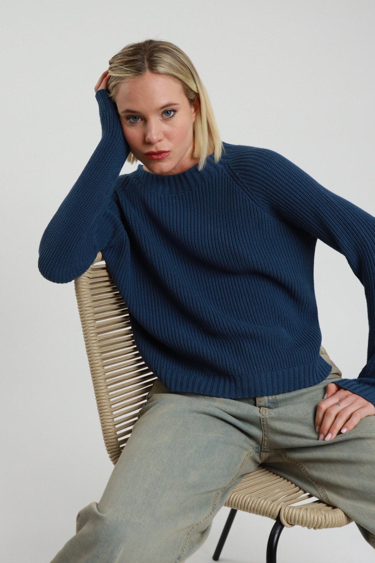 Pullover im Vollstrick, leichter U-Boot-Ausschnitt mit Seitenschlitzen. 100 % co