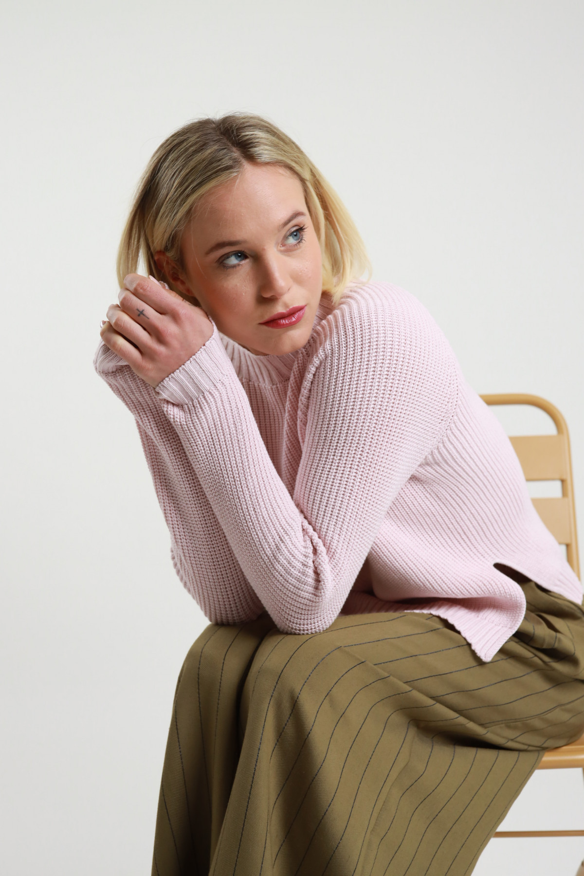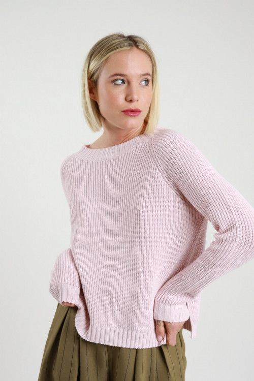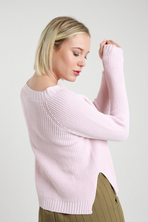 Pullover im Vollstrick, leichter U-Boot-Ausschnitt mit Seitenschlitzen. 100 % co