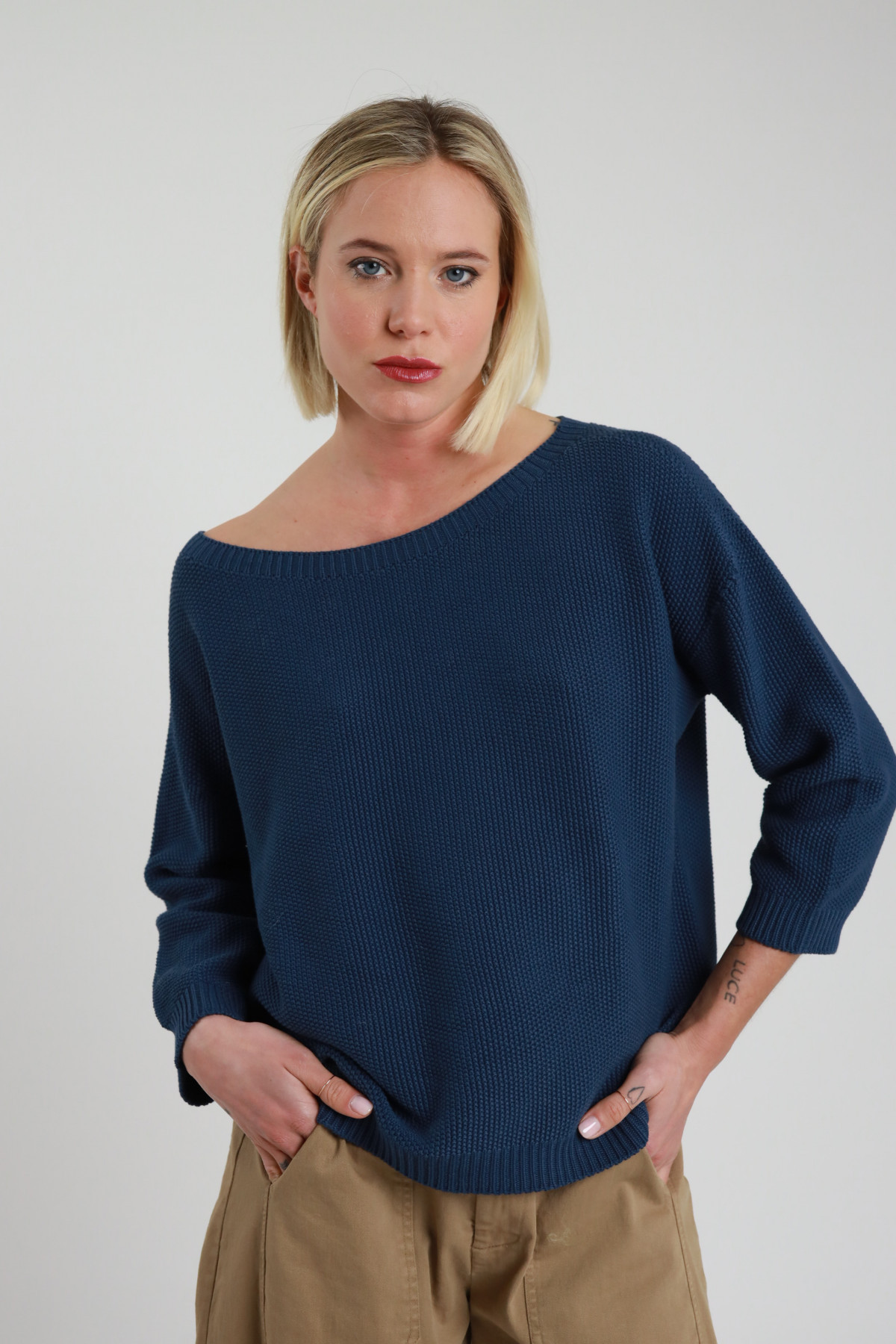 Maglia Punto Riso Manica 3/4, Scollo Barchetta. 100%co