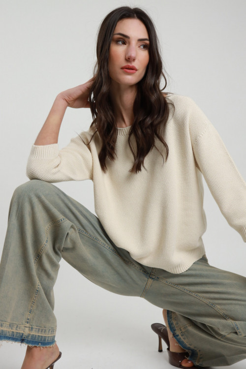 Maglioncino Punto Pannocchia, Scollo Leggermente A Barchetta Con Spacchi Laterali.