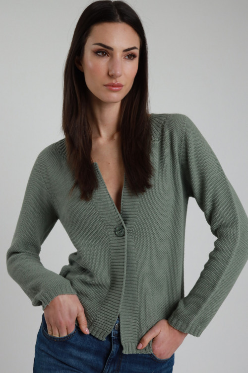 Cardigan Monobottone Con Scollo Ampio. 100%co