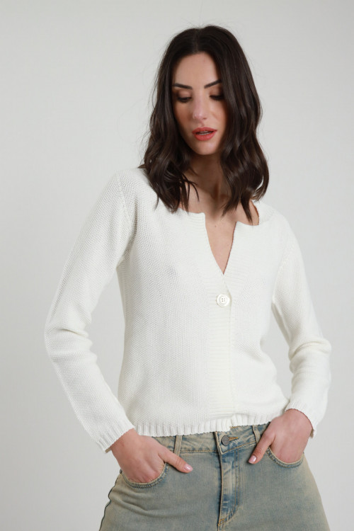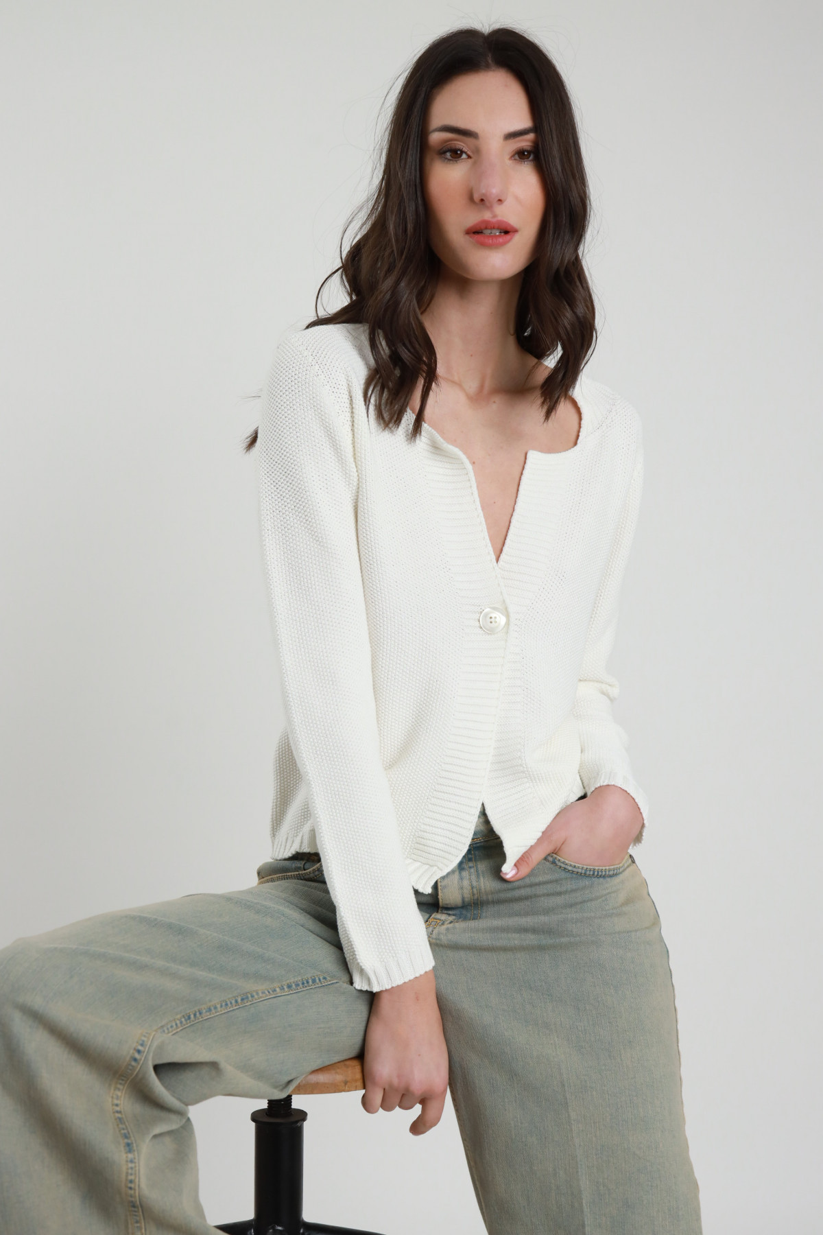 Cardigan Monobottone Con Scollo Ampio. 100%co