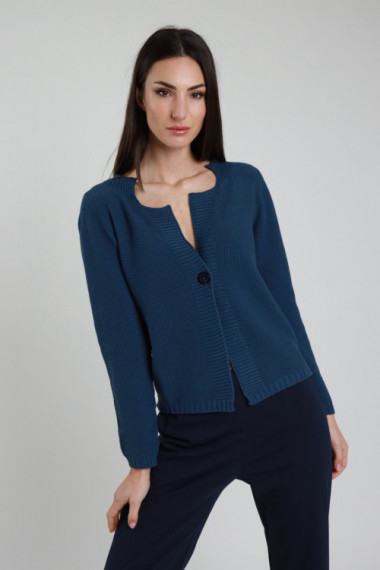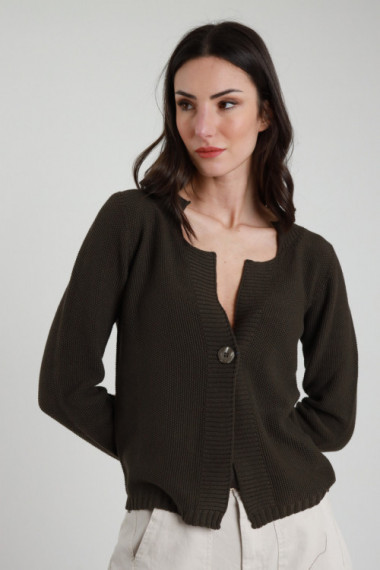 Cardigan Monobottone Con Scollo Ampio. 100%co