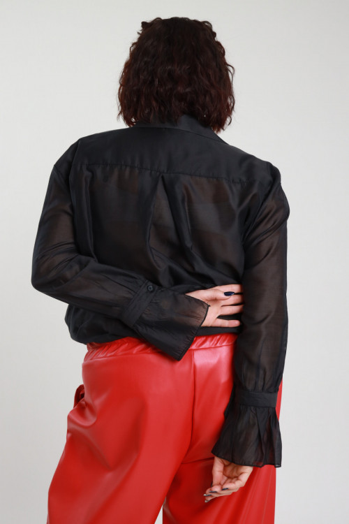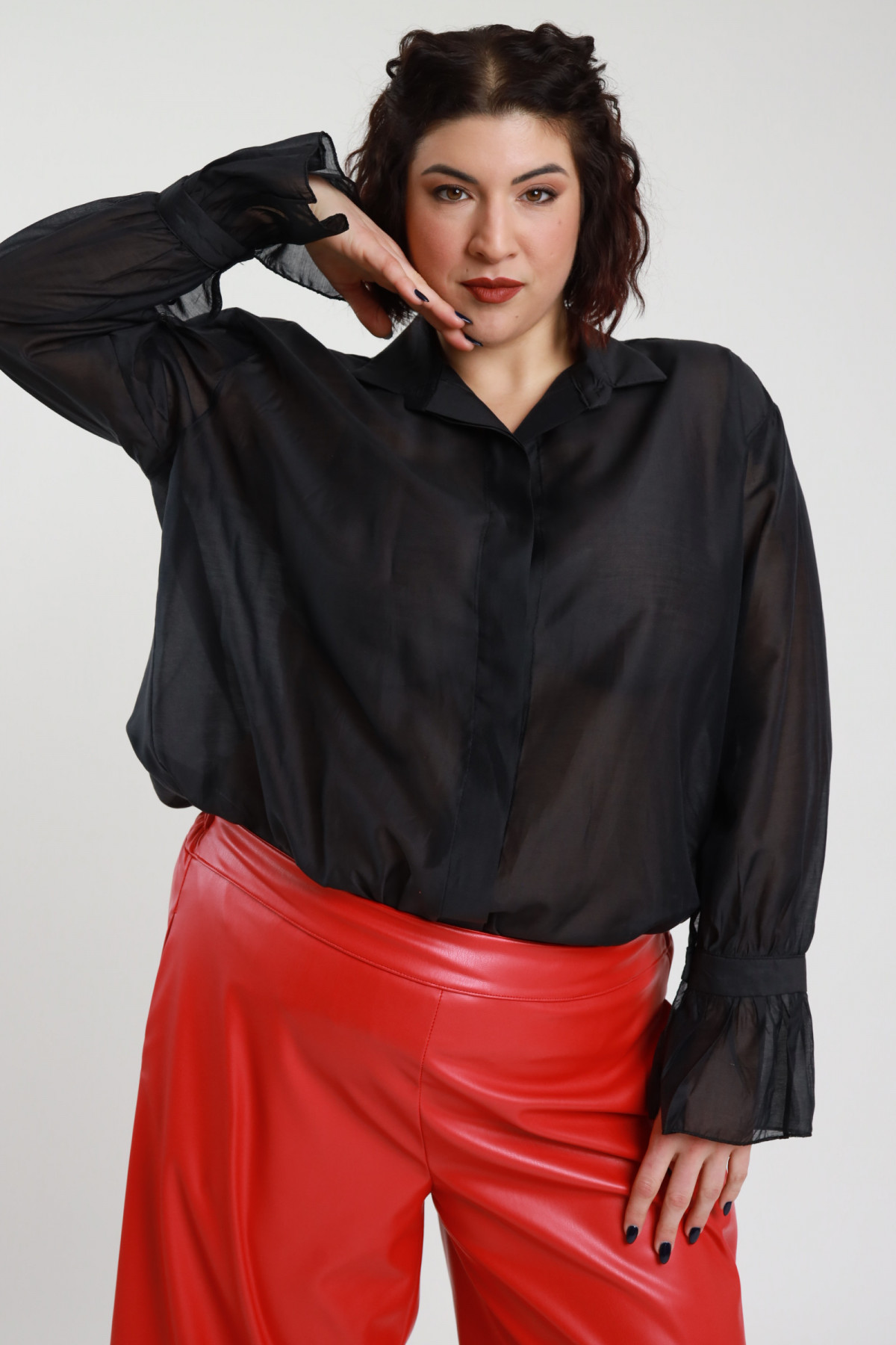 Halbtransparentes Hemd mit Voilant an den Ärmeln – Curvy Susy Star-Linie. 84 % 16 % pl