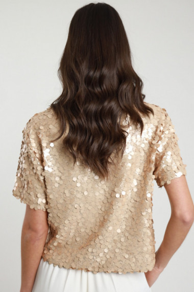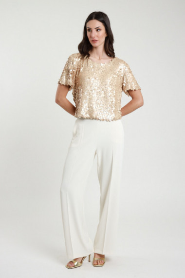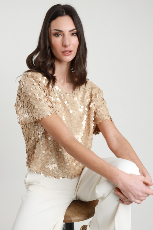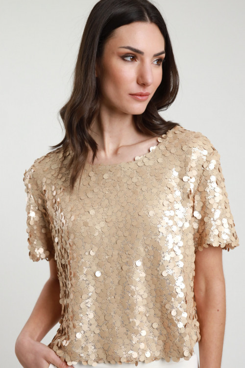 Rundhals-Oberteil mit halben Ärmeln in Pillettes-Optik. 95 % pl 5 % ea + 95 % vi 5 % ea