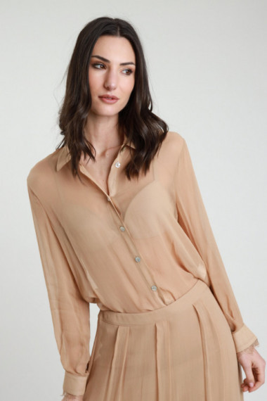 Transparentes Georgette-Hemd mit Spitzendetails an den Manschetten. 100 % vi