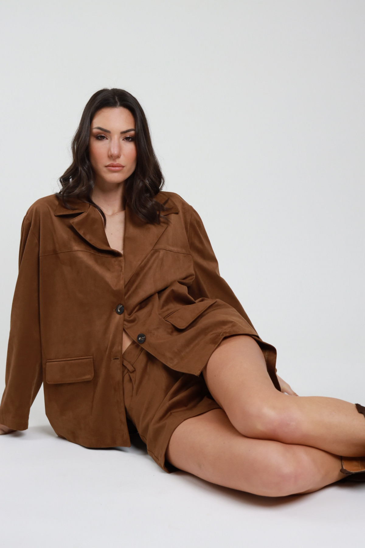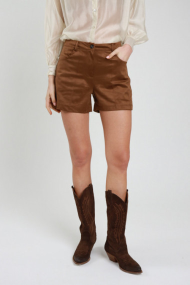 Pantalone Chino Scamosciato Con Tasche Oblique Sul Fronte, Gamba Morbida, Con Cuciture E Pences Sul Fronte. Chiusura Con Cerniera e Un Bottone, Passanti Per la cintura.