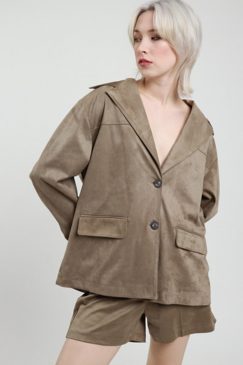 Blazer Over Monopetto in Ecodainetto, Tasche Filetto con Pattina.