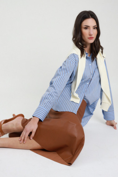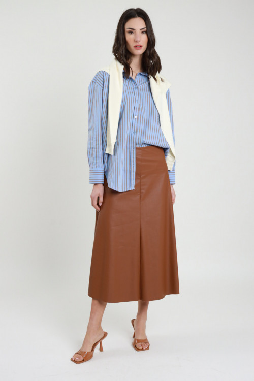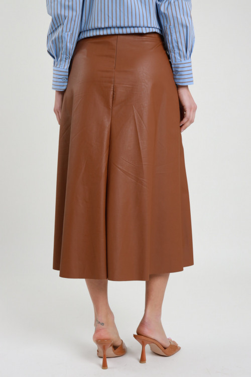 Midirock aus Kunstleder. Nahtloser seitlicher Reißverschluss an der Taille, weicher Schnitt. 100 % PU + 100 % VI