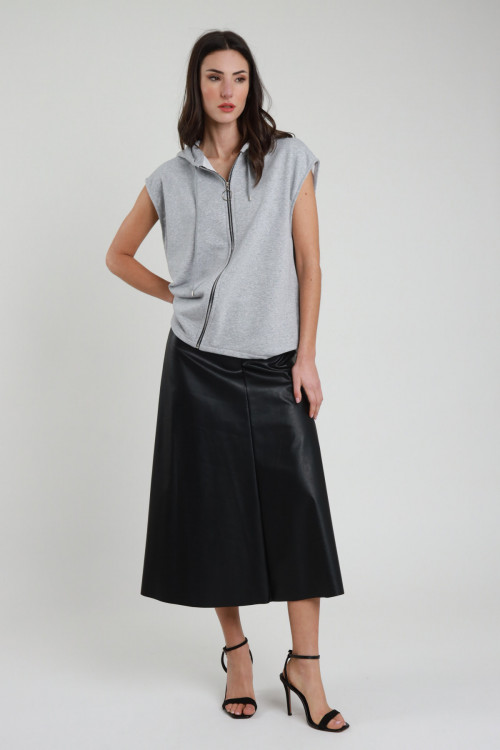 Midirock aus Kunstleder. Nahtloser seitlicher Reißverschluss an der Taille, weicher Schnitt. 100 % PU + 100 % VI