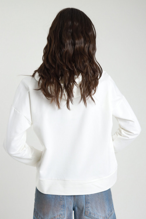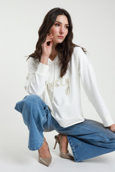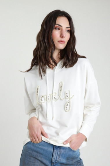 Felpa in Cotone con Cappuccio e Applicazione Perle e Strass "Lovely".