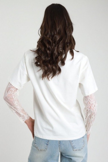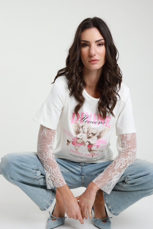 T-Shirt Mezze Maniche Stretch in Viscosa Elasticizzata con Bordi in Georgette.