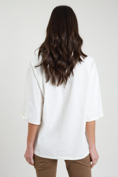 T-Shirt Over, Girocollo Moribo, Manica Extra Stampa Con Angelino e Scritta "Los Angeles With Love". 94%co 6%ea